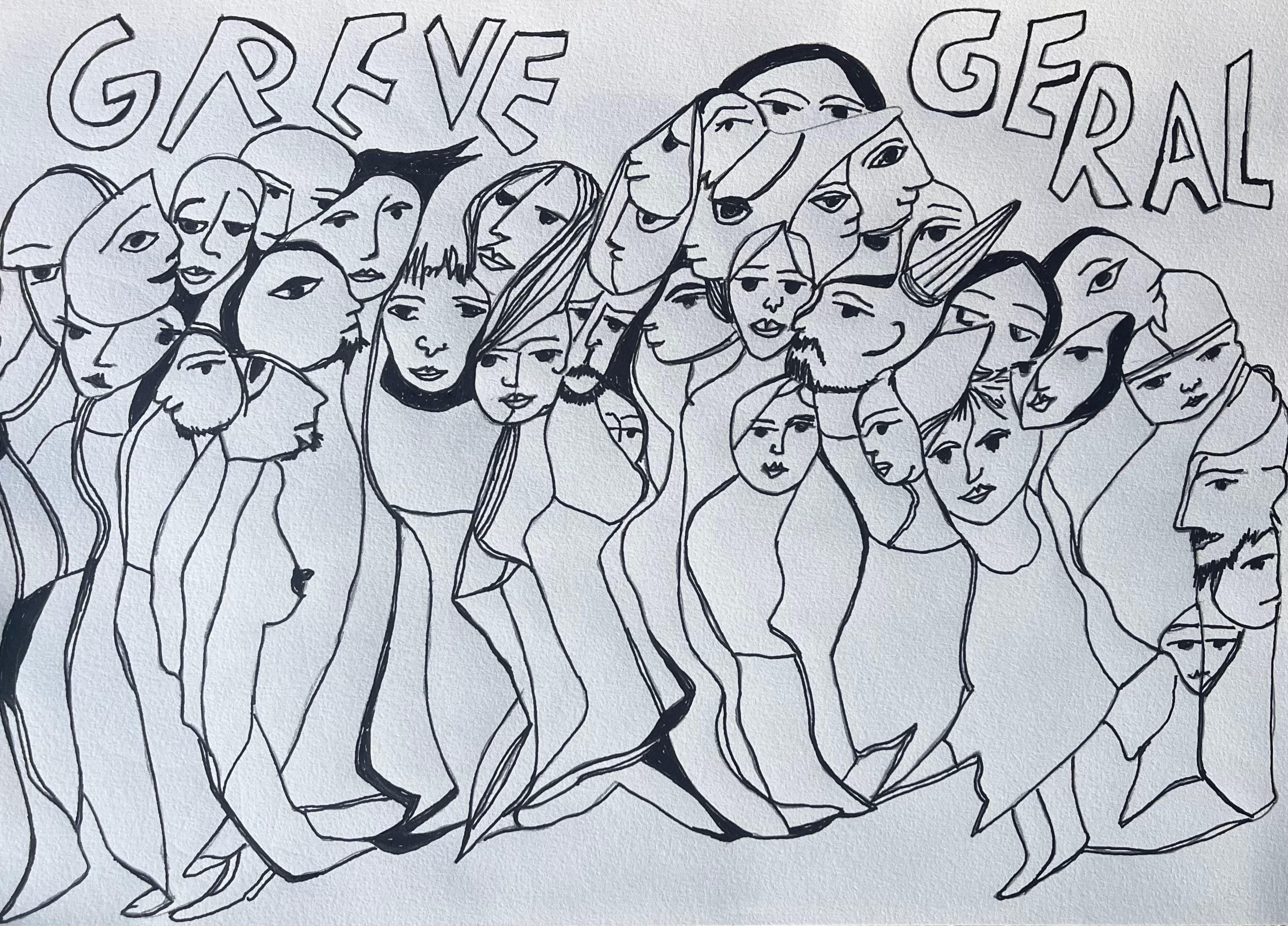 Respondendo a um apelo da nossa revista, a Regina Guimarães fez três belíssimos desenhos pela greve geral, que divulgamos.